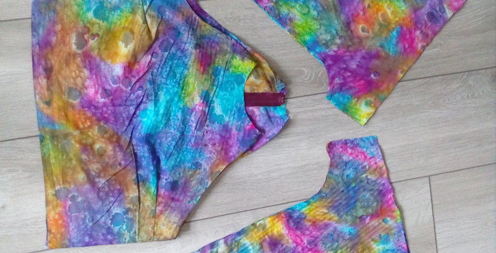 First we went along to the fabric shop in Croydon (Rolls & Rems) where we looked around for a while, we were looking for viscose that was not see-through and had a nice pattern. In the end Jude found the rainbow fabric, even though it was not viscose it was slightly drapey so would work for our purposes, we then looked for a zip that matched the colour of the material and was 10'.